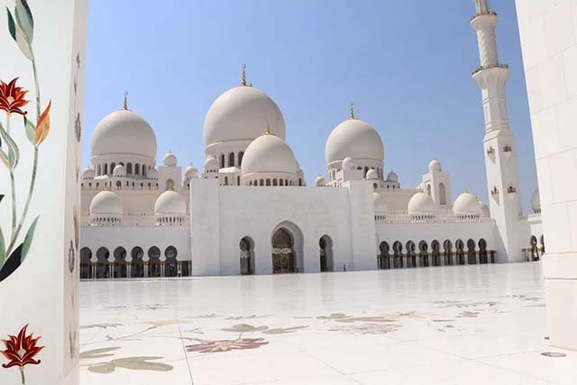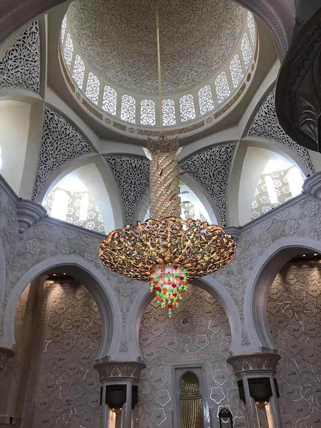 謝赫扎耶德清真寺是為已故老國(guó)王扎伊德所建,是阿聯(lián)酋的標(biāo)志性建筑﹐整個(gè)建筑群都用來(lái)自南斯拉夫的白玉大理石,莊嚴(yán)肅穆,充分體現(xiàn)了伊斯蘭的風(fēng)格。