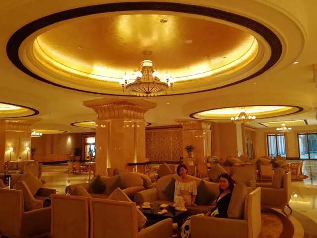 酒店的裝修用的全部是最新材料和技術(shù),飯店的圓頂用最新照明技術(shù)、防腐特殊材料和純金制造,一到晚上就會(huì)自動(dòng)發(fā)光,金光閃閃,永不掉色。