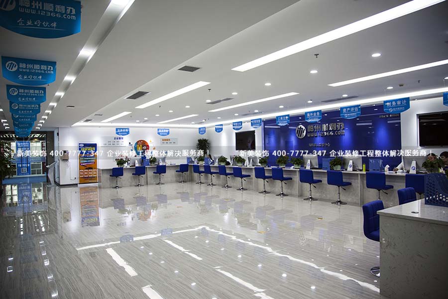 神州順利辦是現(xiàn)代級企業(yè)服務(wù)的締造者,解決企業(yè)在"生老病死"過程中的各種剛性服務(wù)需求。本案是其位于深圳市南山區(qū)的運營中心。電梯出口便是服務(wù)大廳,房頂直垂的提示牌讓人快速找到辦事窗口。